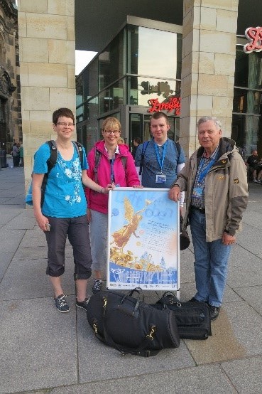 Das Wochenende begann für uns am Freitagnachmittag mit der Eröffnungsveranstaltung auf dem Dresdener Neumarkt vor der imposanten Kulisse der Frauenkirche. Das Wetter war sehr wechselhaft - erst zogen die dunklen Wolken noch vorbei, aber dann bekamen wir eine ordentliche „Dusche“ ab. Im Gegensatz zu vielen anderen haben wir ausgeharrt und uns vier samt Notenständer mit drei kleinen Schirmen beschützt. Am Abend ging es dann über das Blaue Wunder zur Kirche nach Loschwitz, wo wir dem Elbhang Posaunenchor bei seinem Konzert lauschten. Die Rückfahrt in einer überfüllten Straßenbahn wird uns noch lange in Erinnerung bleiben.