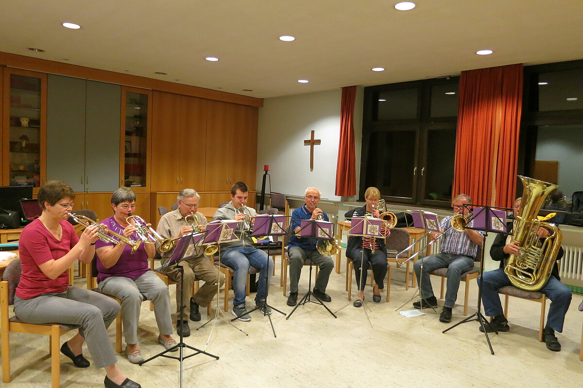 Am 23.07.2020 haben sich fast alle Bläser unter Einhaltung der Corona-Auflagen wieder getroffen. Zum Glück meinte das Wetter es gut mit uns, so dass wir in den ersten, noch sommerlichen Wochen unsere Proben draußen vor dem Gemeindehaus abhalten konnten. Wir genossen es, wieder gemeinsam zu musizieren. Und wir waren erstaunt, wie viele Leute wir durch unsere Musik anlockten, die uns dann eine Weile interessiert zuhörten, bevor sie ihren Abendspaziergang fortsetzen.