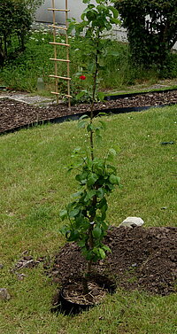 Im Garten befinden sich ein Apfel und ein Birnenbaum. Der Birnbaum wurde anlässlich einer Taufe von den Großeltern des Täuflings gestiftet. Auch von diesen Früchten dürfen Sie naschen, wenn die Früchte reif sind.